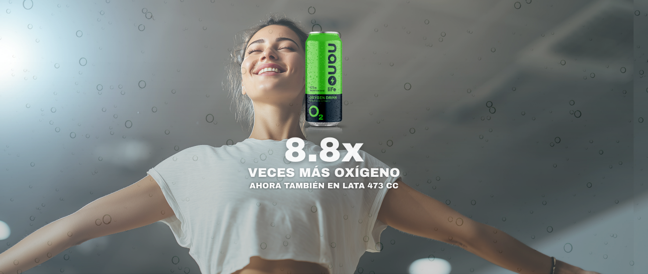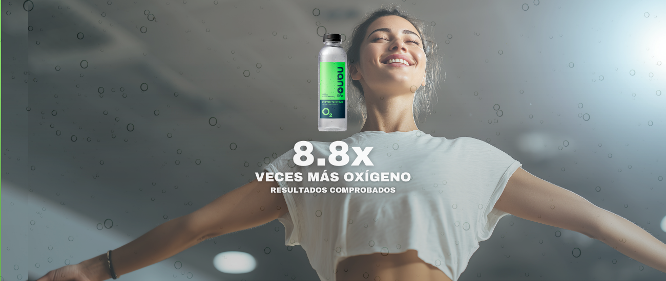 Nano+Life es agua purificada y alcalina (pH 8.5) con oxígeno encapsulado en nanopartículas, lo que ayuda a optimizar tu oxigenación de manera natural.