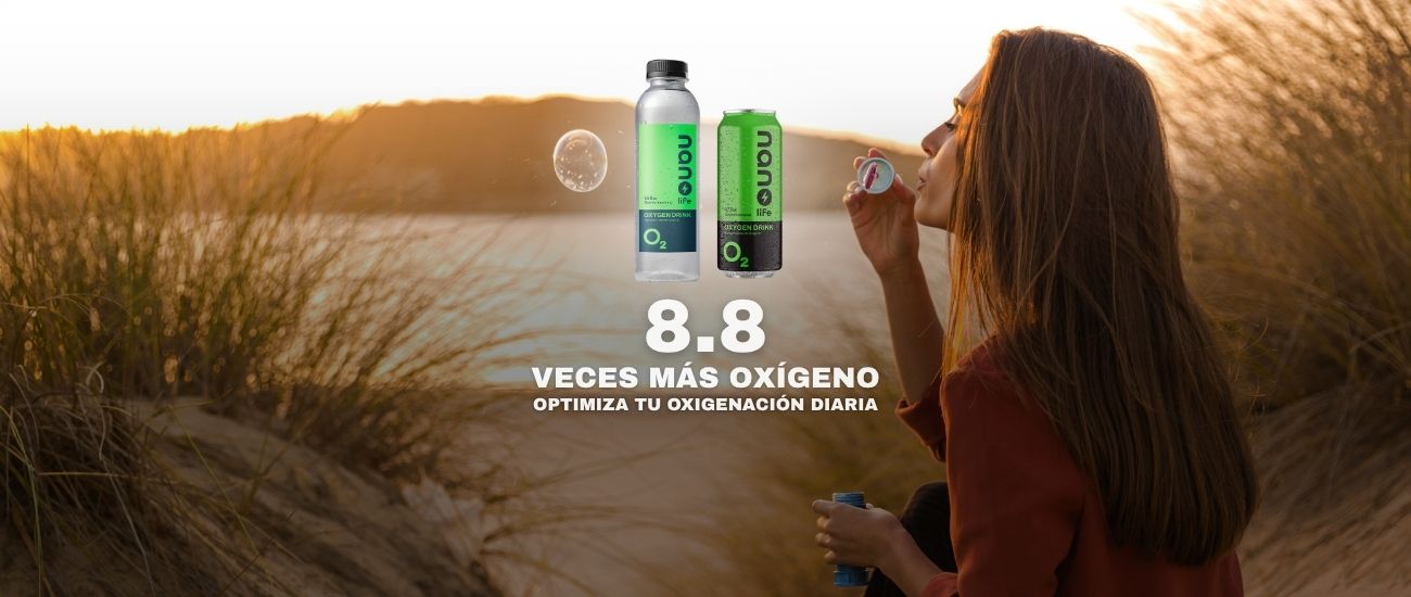 Nano+Life es agua purificada alcalina con oxígeno encapsulado en nanoburbujas. Contiene hasta 8,8 veces más oxígeno que el agua convencional, facilitando su absorción y biodisponibilidad para una oxigenación celular eficiente: más energía diaria, mayor foco mental y mejor recuperación.